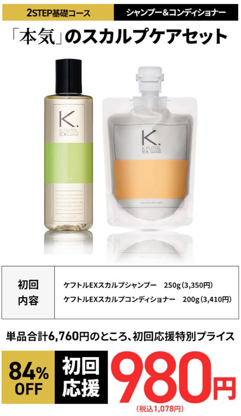 通常合計6,760円のシャンプー+コンディショナーセットが、定期初回980円!こちらは都度購入の場合でも初回2,980円でお試しできるので、まずスカルプシャンプーってどんな感じか試してみたい人にピッタリ。